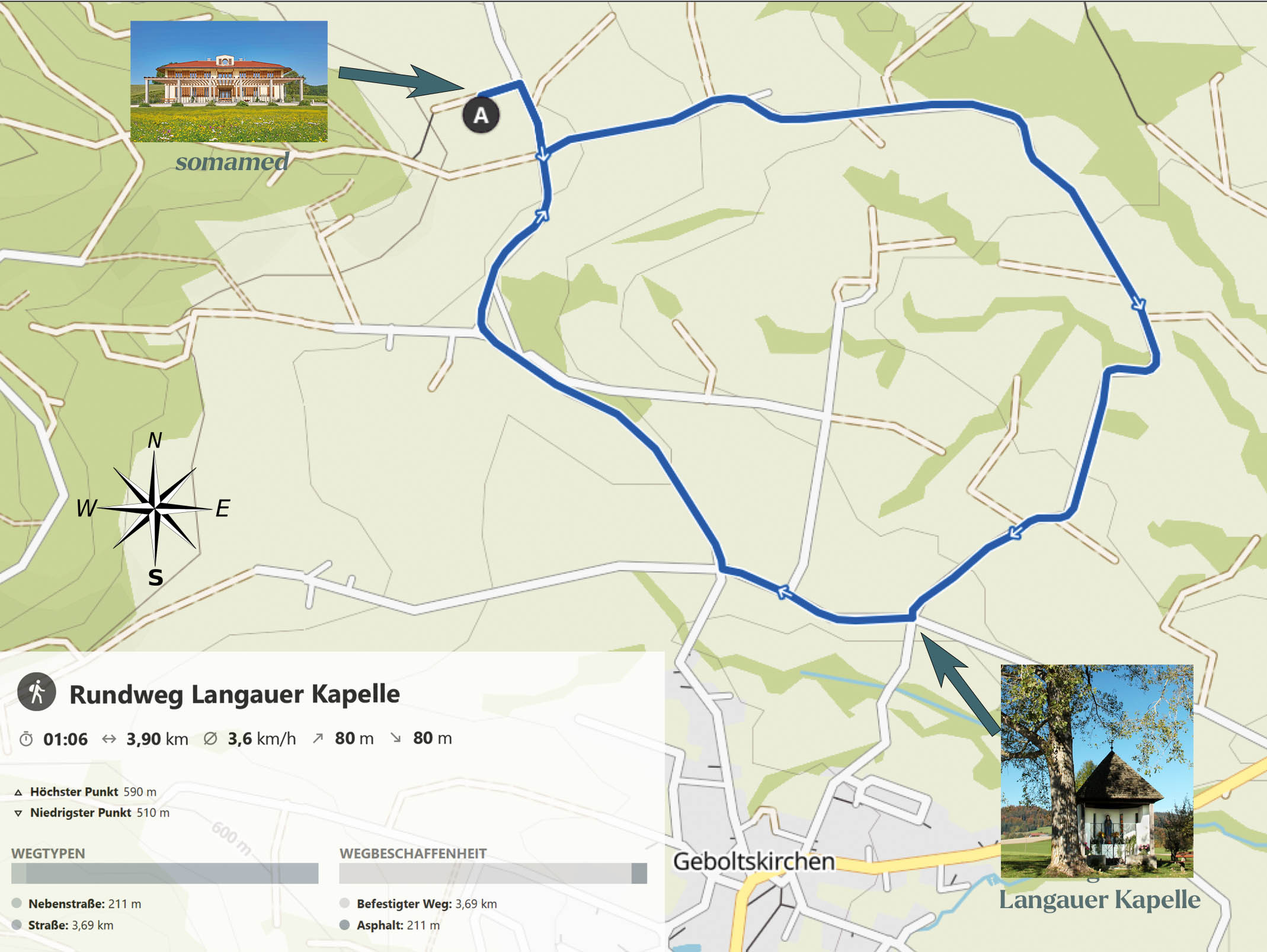 Ein sanfter Weg durch die Natur, leicht begehbar und für jedes Fitnesslevel geeignet. Die idyllische Kapelle bildet den stimmungsvollen Höhepunkt dieser entspannten Wanderung.