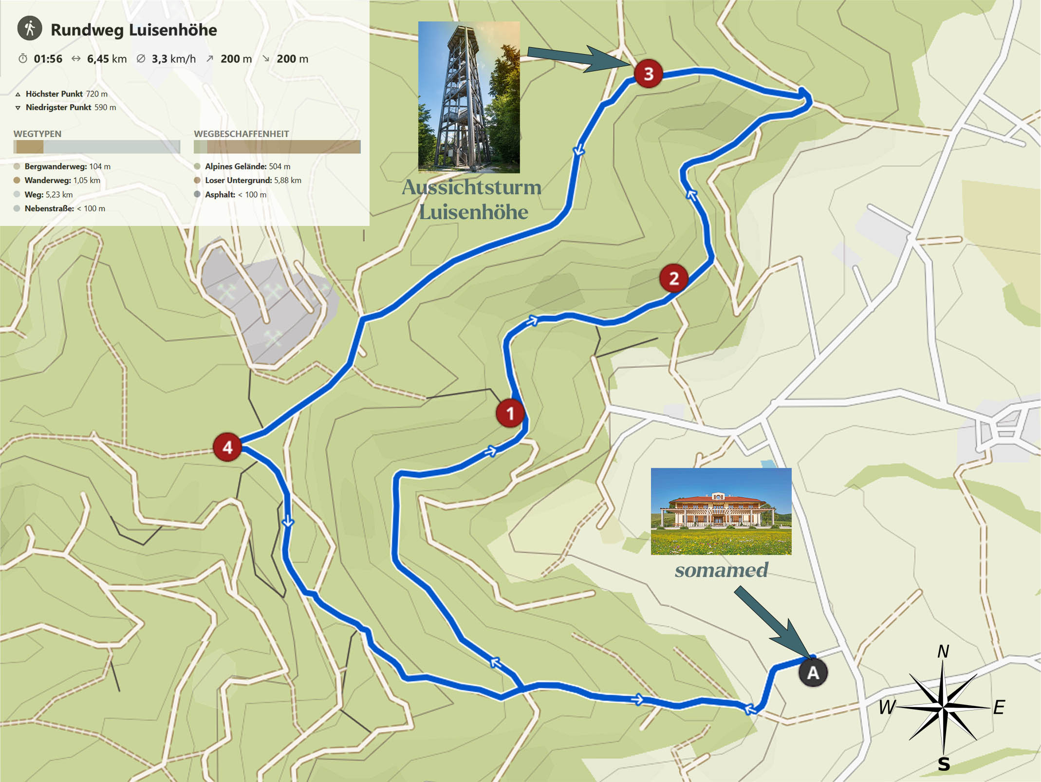 Ein sanfter Weg hinauf zur Luisenhöhe, leicht begehbar und für alle Fitnesslevel geeignet. Naturpanorama und Weitblick laden zum Innehalten und Genießen ein.